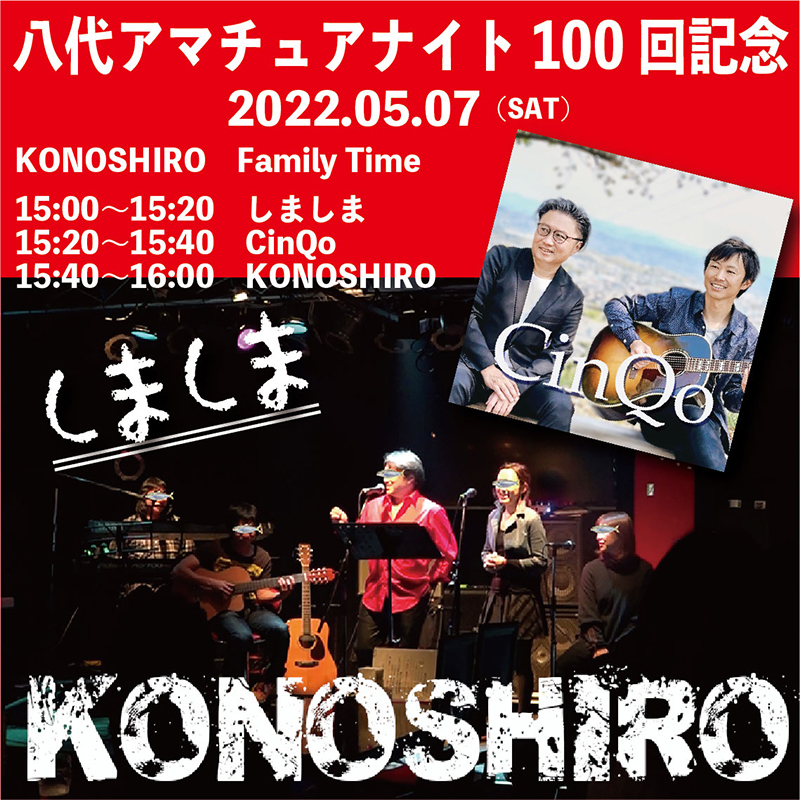 2022.04.29NEXT LIVE @八代アマチュアナイト 未分類 この記事のタイトルとURLをコピーする 2022.05.07(sat) 本町がらっぱ広場15:00 しましま15:20 CinQo15:40 KONOSHIRO この記事のタイトルとURLをコピーする NEXT ライブ情報前の記事